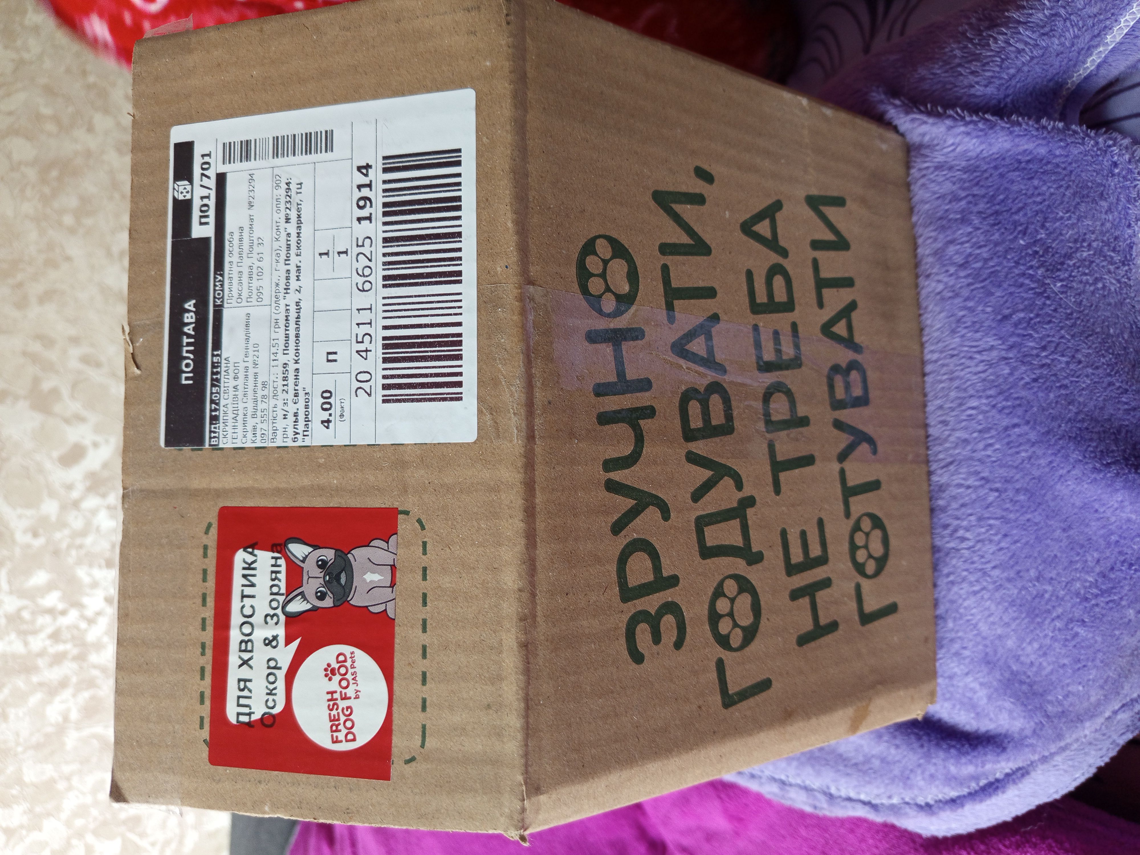 Заказывали Fresh Dog Food для своего джек рассела.Псина у нас попалась с аллергией, большую часть лета провели в ветеринарке, потому что он чесался абсолютно на все (((( замучались ужасно. Кормили уже и Роялом, и Аканой и более дорогими кормами, толку не было. Уже отчаялись. ветеринар настаивал что надо переводить на ограниченный рацион, и лучше натуральный. Но это ж готовить. а у нас еще дети, плюс муж по командировкам, да я работаю. Некогда это делать абсолютно. Искала как решить проблему, нашла сайт Fresh Dog Food. Там тоже хозяева компании пишут, что у них собака с аллергией. Заказала на пробу. Под наши потребности вышло 43 грн за день, вот такой просчет. Сушка нам обходилась дороже, конечно. Но и ел он ее не очень хорошо. Пришел курьер, принес коробочку с охладительным .элементом. В коробочке семь пакетов. Все с наклеенной этикеткой, все очень красиво, не просто на коленке делано. Написан состав по граммам, что входит. У нас такой пакет был на два кормления как раз. Открыла. Пахнет конечно так, что самой есть хочется ))))) там мяско, морковочка (нашему можно), увидела немного риса, но совсем чуть. Мяско ягнятина. Перед тем, как предложить нам рацион, я отправила им анкету Анчоуса, там нужно было написать, в чем проблемы у нас. Связались в тот же день, предложили план. я его показала нашему вету, он одобрил. В целом я довольна, уже на автомате кинул денежку, получил рацион. Аллергии нет, собака довольна.