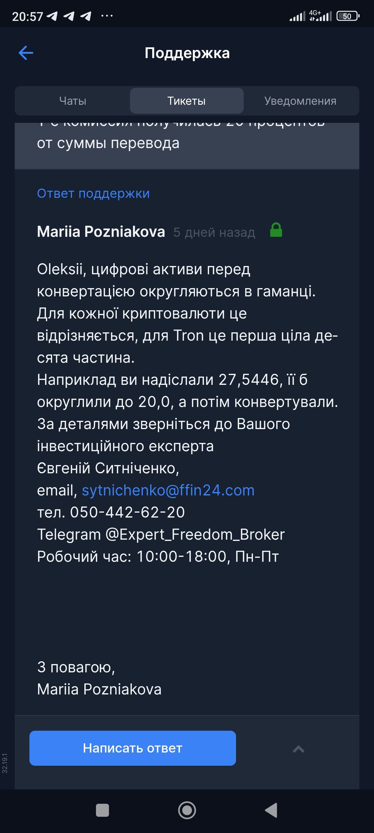 При пополнении криптовалютой на эквивалент 21 доллар на счёт дошел эквивалент 17 долларов, техподдержка сказала на это что они просто округляют в свою сторону. Т. Комиссия от суммы пополнения составила 20 процентов а не 2 процента как при пополнении через карту . Нигде об этом не указано.
