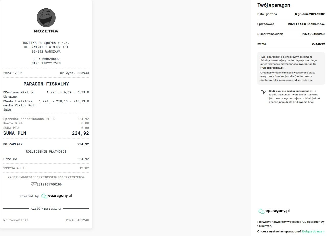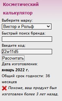 Заказ 832161257 (від 28.11.2024) Товар был произведен 3 года назад и косметический калькулятор выдает информацию, что срок годности истек. Розетка отказалась предоставить сертификат на продукцию, где будет подтверждение того, что это оригинал и где будет указан срок годности товара с даты производства. Уже прошло 4,5 месяца с даты покупки и они постоянно закрывают диалог в Telegram и на сайте Rozetka, и отказываются заменить товар, срок годности которого истек! Негативные отзывы или не публикуют, или публикуют, но через пару дней удаляют. В ответ мне просто пишут, что срок годности парфюмерии 5-15 лет. При этом сам производитель Viktor & Rolf даёт только 36 месяцев с даты производства. Это третье по счету кидалово от Розетки при покупке парфюмерии у них на сайте. До этого были другие заказы, когда приходили пустые пробники парфюмерии (№ 836830645 від 27 грудня 2024) и оторванная защитная слюда на упаковке парфюма Tom Ford (№ 822547965 від 29 серпня 2024). О том, что срок годности парфюмерии истек и о том, что коробка повреждена, нужно заранее предупреждать! Я уже не говорю о том, что работники склада выливают на себя парфюмы из пробников, а мне потом подсовывают пустые флакончики.