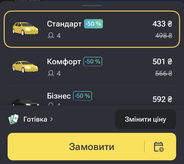 Добрий день. Хочу попередити користувачів сервісу Uklon. Харків, 24.12.2023, у 21-53 замовляла таксі через додаток, міський наземний транспорт вже нажаль не ходить, оформила заказ перейшла до сплати, а сума в 1/3 більша, чим ту, що була в додатку я сплатила. Але вирішила на наступний день уточнити у підтримці чому так сталося, відповідь - все залежить від попиту. Це зрозуміло, але по-моєму збільшувати вартість на стадії оплати не попередивши клієнта, це дуже дивно. Тому майте на увазі Uklon може змінити вартість поїздки не попередивши на стадії оплати.