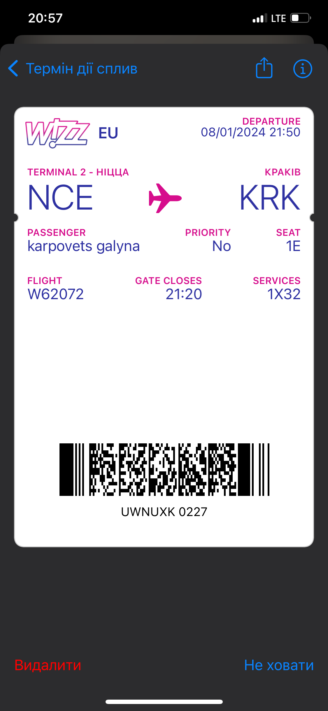Найгірший досвід з Wizz Air — безпідставна відмова у посадці Під час посадки на рейс авіакомпанія Wizz Air без будь-яких офіційних пояснень відмовила одному з пасажирів у польоті, звинувативши його у стані алкогольного сп’яніння — без огляду, доказів чи документації. Більше того, без жодних підстав відмовили у перельоті ще двом членам родини, які не мали до ситуації жодного стосунку, поводилися спокійно та вже знаходились в автобусі до літака. Жодних пояснень, офіційних актів чи документів надано не було. Представник авіакомпанії діяв на власний розсуд, без об’єктивних підстав. Це не лише викликало емоційний стрес, а й призвело до серйозних додаткових витрат через необхідність купувати нові квитки за власний кошт. Абсолютна відсутність поваги до пасажирів, ігнорування прав та недотримання стандартів обслуговування